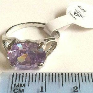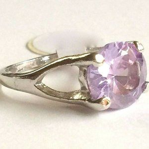 Amethyst Ring Size 7 Lavender Purple Cubic Zirconia Simulated Silver Plated