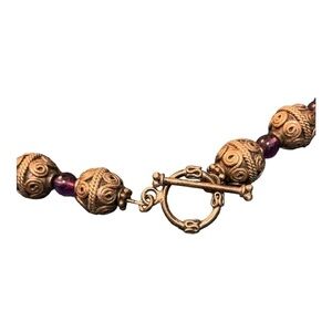 Amethyst And Silver Colored Beaded Nepalese 18” Toggle Clasp Bohemian Necklace