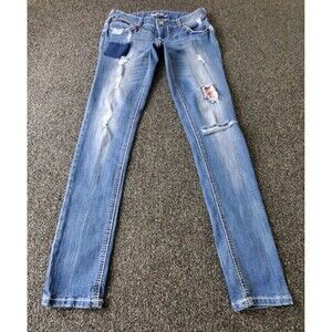 Amethyst Skinny Jeans Women's 5 Flannel Patches Distressed Thick Stitch Stretch