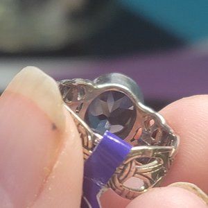 This solid sterling silver ring was hand-made in Thailand by Peter Stone Jewelry. It is a stunning, faceted genuine amethyst about 3/8 inch tall set in solid .925 sterling silver. The engraved and pierced Celtic Borre Knotwork band is 1/4 inch wide. The bezel is open in the back for extra sparkle and light. It is brand new with tag. It would make a stunning anniversary, wedding, or engagement ring. Celtic knotwork symbolizes eternity.