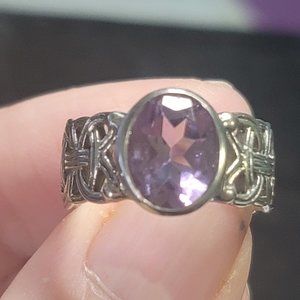 Amethyst Sterling Silver Celtic Borre Ring in Sterling Silver Size 7 or 8