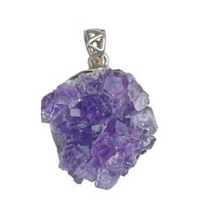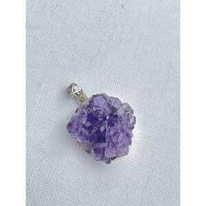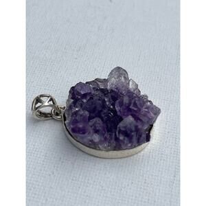 This amethyst geode is nestled in a sterling silver setting. Good used condition
