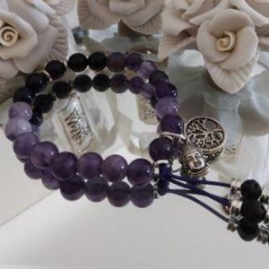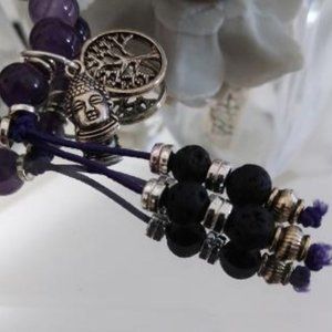 Amethyst Stretch Bracelet w/Tree of Life and Buddha Charm