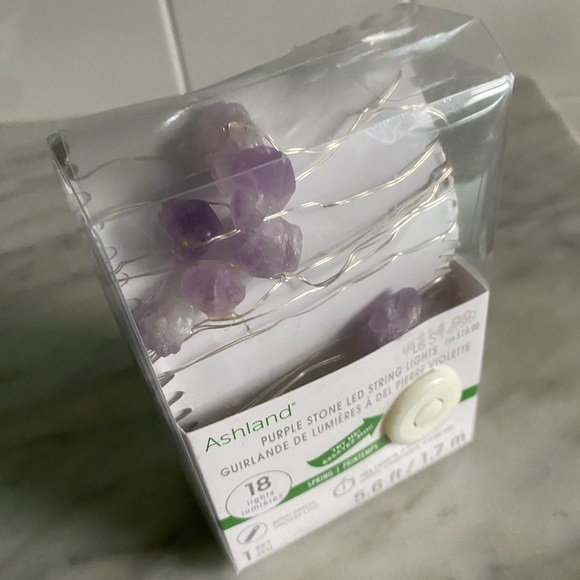 Ashland Amethyst string lights bought at Michaels, never used. These look beautiful around a picture frame, in a vase. Around crystals. Relaxing light. New with box