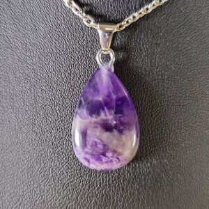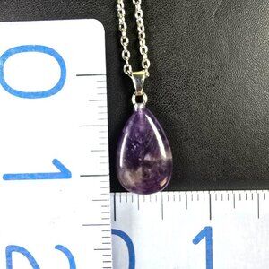 Enhance your jewelry collection with this exquisite amethyst necklace. The vibrant purple teardrop pendant on a silver chain adds a touch of elegance to any ensemble.