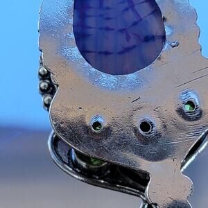 This stunning handcrafted sterling silver pendant features a captivating teardrop-shaped amethyst centerpiece with its unique deep purple hues. Framed by intricate silver filigree details, the pendant exudes elegance and sophistication. Below the amethyst, you'll find an exquisite arrangement of two vibrant green peridots, a pear-cut deep purple amethyst, and a sparkling golden sandstone accent that adds warmth to the design. Topped with a lustrous pearl, this pendant is a true statement piece. Paired with a 20-inch sterling silver chain, it’s perfect for elevating your everyday wear or adding a touch of luxury to special occasions.