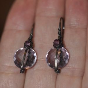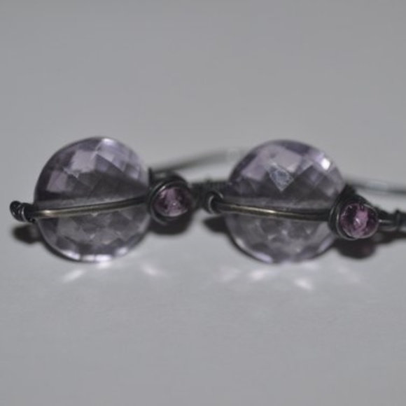 Faceted Amethyst and Tourmaline Wire Wrapped Earrings