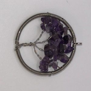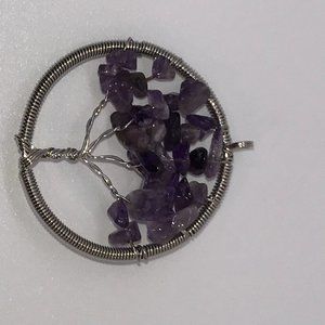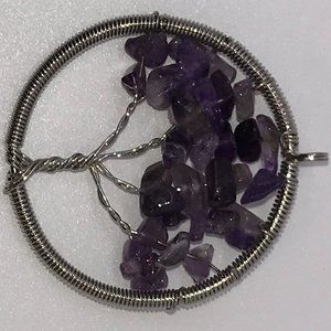 This is a 2 1/8” wide tree of life wire wrap pendant with Amethyst chips. This is a sturdy pendant with a large bezel at the top. I can make matching earrings to this is you want.