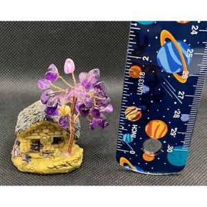 This is a cute Cottage with a wire wrapped Amethyst tree attached next to it.
