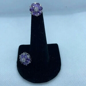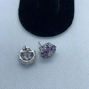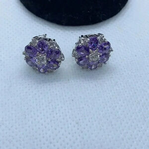 Amethyst and CZ cluster sparkling 925 Sterling Silver earrings