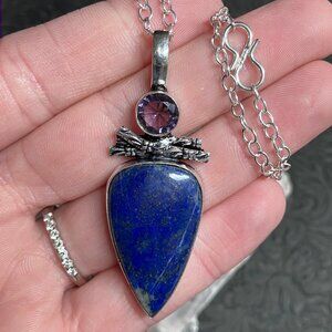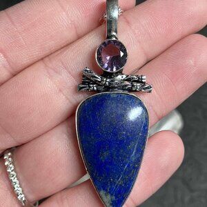 Amethyst and Lapis Lazuli Witchy Pendant Necklace Stone Crystal Jewelry