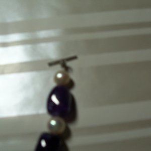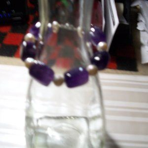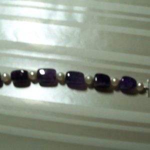 Big and bold sterling silver amethyst and white pearl bracelet. This bracelet is 7-1'2" long with a toggle clasp. New, never worn!