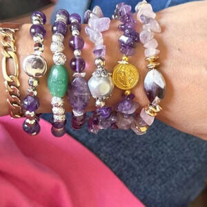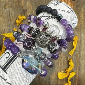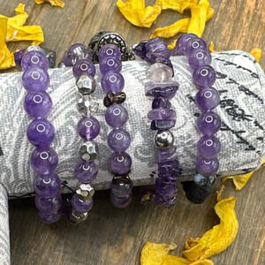 Amethyst beaded bracelet/statement /purple/bohemian/handmade/