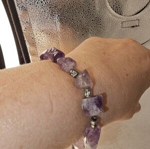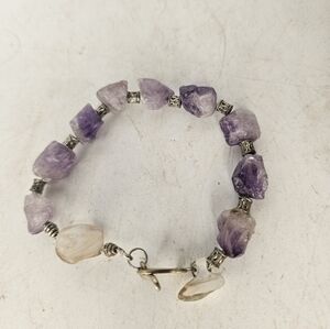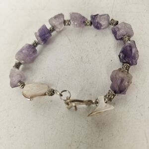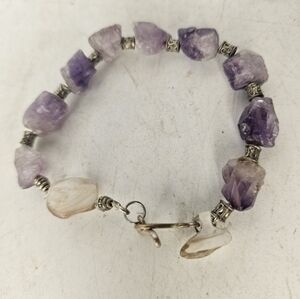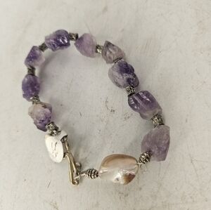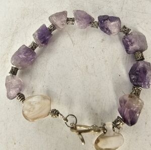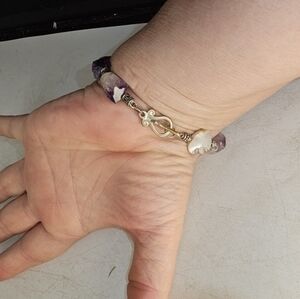 women's bracelet, amethyst and mother of pearl with antique silver spacer beads and a Sterling silver clasp. Handmade by me, measures approximately 7 1/2".