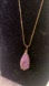 Elegant purple stone pendant necklace wrapped in gold wire. Perfect for adding a touch of sophistication to any outfit.
