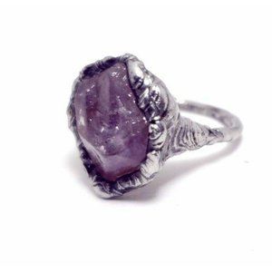 One little raw cluster of purple amethyst points crafted into a nice statement ring.
