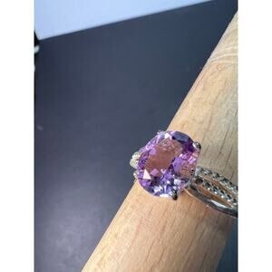 Genuine amethyst gemstone prong set in sterling silver. Size 9