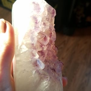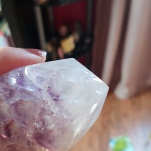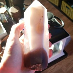 Amethyst agate tower, slight chip on the top point but still a beautiful piece. More pictures upon request. Reasonable offers please.