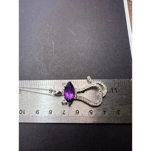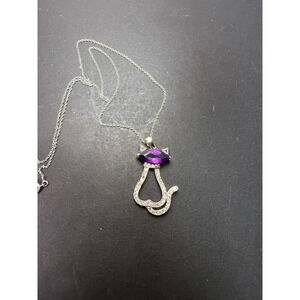 Amethyst white topaz Rhodium Over Silver Cat Pendant Chain 3.40ctw