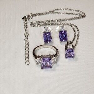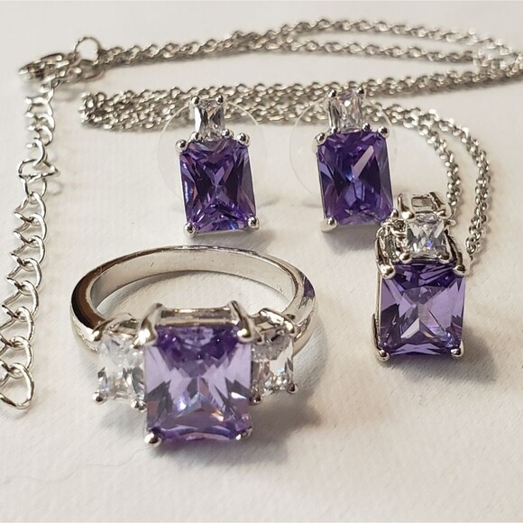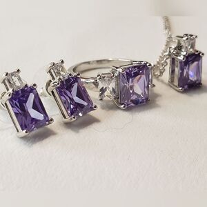 Amethyst with Silver Setting Ring, Earrings, Necklace, NWOT