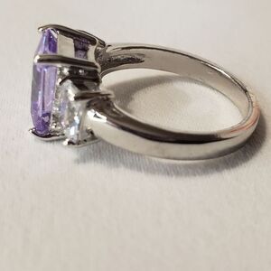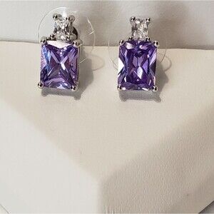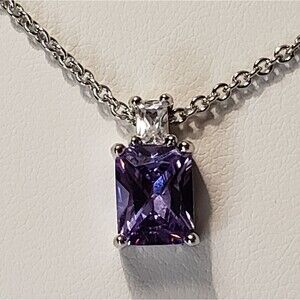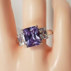 Amethyst type stone, rectangle, with Silver tone Setting and clear crystal type stone, NWOT