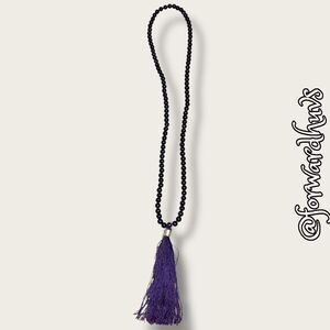 At the base of the strand, a rich purple tassel is secured with a gold thread accent, adding a subtle touch of elegance and contrast. Ideal for spiritual practice, yoga, or as a meaningful accessory, this Mala blends tradition with natural beauty.