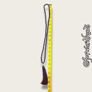 Amethyst Mala Prayer Bead Necklace – 109 Beads with Purple Tassel & Gold Thread