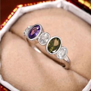 Vintage Silver Plated Zircon Amethyst and Peridot Ring: