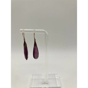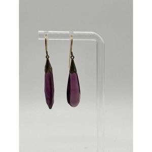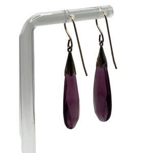 Striking Deep Purple Amethyst Quartz faceted elongated teardrop earrings