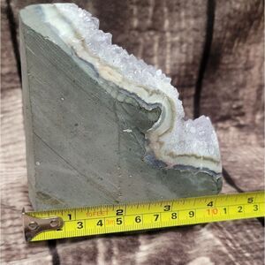 đ Beautiful Amethyst, light purple in color, and look at all the banding on the edges. This is a small cathedral - it can stand up on its own. It is sooo sparkley. This one is a little fatter than the others. It weighs 2.14 lbs or .972 kilograms.