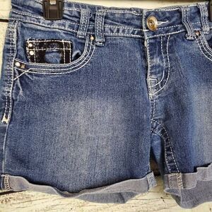 Amethyst Women’s Embellished Cuffed Denim Shorts Size 9 Mid Rise Stretch