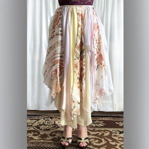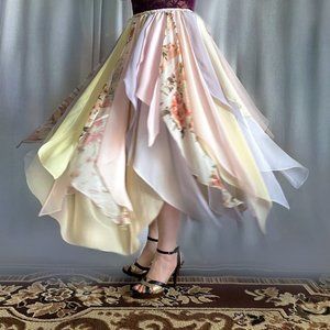 New handcrafted skirt, one of a kind. Nice for belly dance, modern gypsy costume or dance performance, or fairy cosplay, etc. Actually, it is two-layered petal skirt: layer of longer petals sewn together then to elastic waistband, and another layer of petals sewn over those. Elastic waistband stretches good to fit figure. Comes with a few flower print petals. One of a kind skirt.