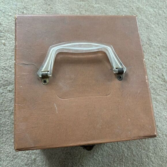 Amfile Platter-Pak Phonograph Record Case With Dividers. Light brown case in good condition. Has some wear and slight creases. 8” x 8” x 8”. Dividers have wear and creases. See photos.