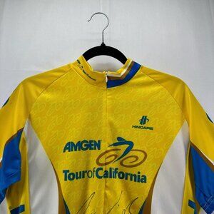 Amgen Tour of California Cycling Jersey Adult L Signed by Levi Leipheimer Yellow
