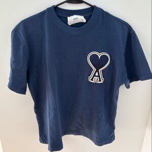 Ami Alexandre Mattiussi Womens Crew Neck Patch T-Shirt Large Logo Boxy Designer