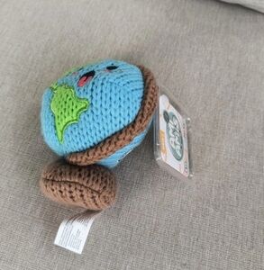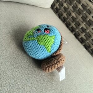 Adorable Earth plush toy with a smiling face. Features blue and green globe with a brown base.