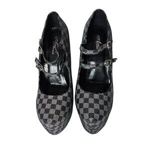 Ami Clubwear Black and Gray Shimmer Checker Board 6 inch Platform High Heels