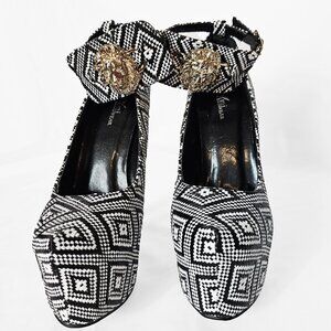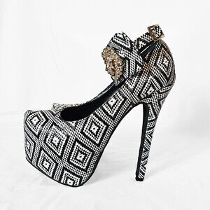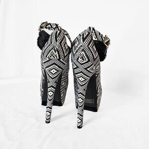 Ami Clubwear Black and White Platform Geometric 6 inch Pattern High Heels