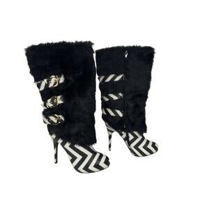Ami Clubwear Faux Fur Striped Boots Size 8.5