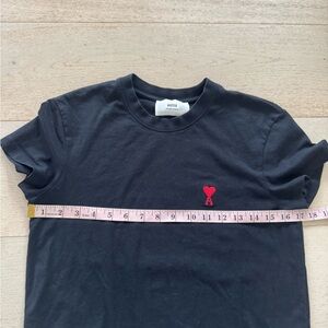 Ami De Coeur black T-shirt with red embroidered logo. Size XXS