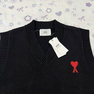 AMI Paris Black V-Neck Knit Vest