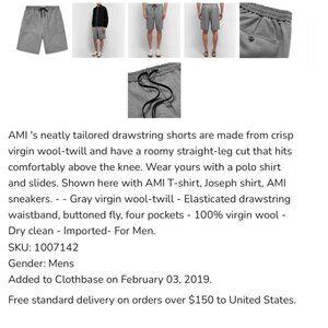Ami Paris Elastic waist wool fabric bermuda short, Gray, Size 44 M51