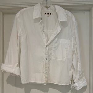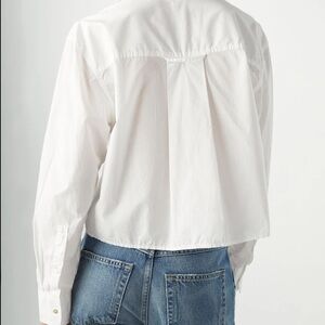 A cropped version of your everyday oversized collared shirt. Features a single chest pocket and shell buttons. Crafted from soft, stonewashed cotton poplin.