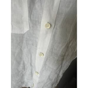 Amiani Men’s 100% Linen Short-Sleeve Button-Up Shirt | White XL