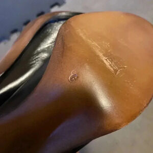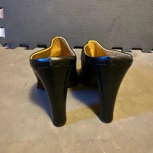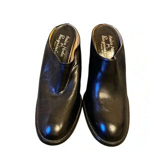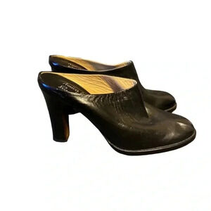 Amica Moda for Rasprini Black Leather Mules Heels Size 6 Black. These shoes are pre-owned. Good condition. No flaws. Heel measures 4 inches tall.