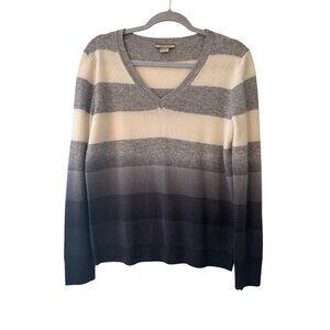Amicale 100% Cashmere Ombre Striped V-Neck Sweater Soft Luxe Gradient Knit M