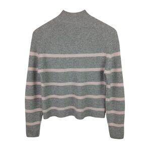 This is a beautiful Amicale gray with soft pink striped cashmere mock neck sweater. It is new without tags. It has a casual cropped style, and would pair perfectly with a great pair of jeans.