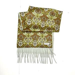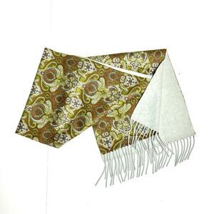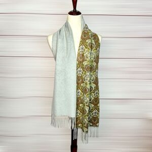 Amicale Cashmere Scarf with Fringe Double Sided Paisley Green Brown Gray