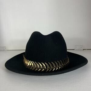 Elevate your accessory game with the Amici Accessories Felted Wool Hat, a timeless piece that melds classic style with a touch of bohemian flair. The chic metallic band adds a contemporary edge to the traditional fedora design, making it a versatile choice for both casual and sophisticated looks. Crafted from high-quality wool felt, this hat provides both durability and comfort. Its one-size-fits-all construct ensures a snug and flattering fit for a range of head shapes and sizes, while the classic black hue offers endless styling possibilities. Whether you're dressing up for an event or adding a flair to your everyday wear, this hat is an impeccable choice.