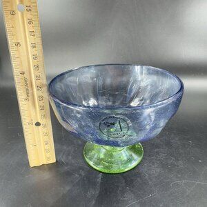 Amici Art Glass Footed Compote Large Drinking Cup Bowl Blue And Green Bottom